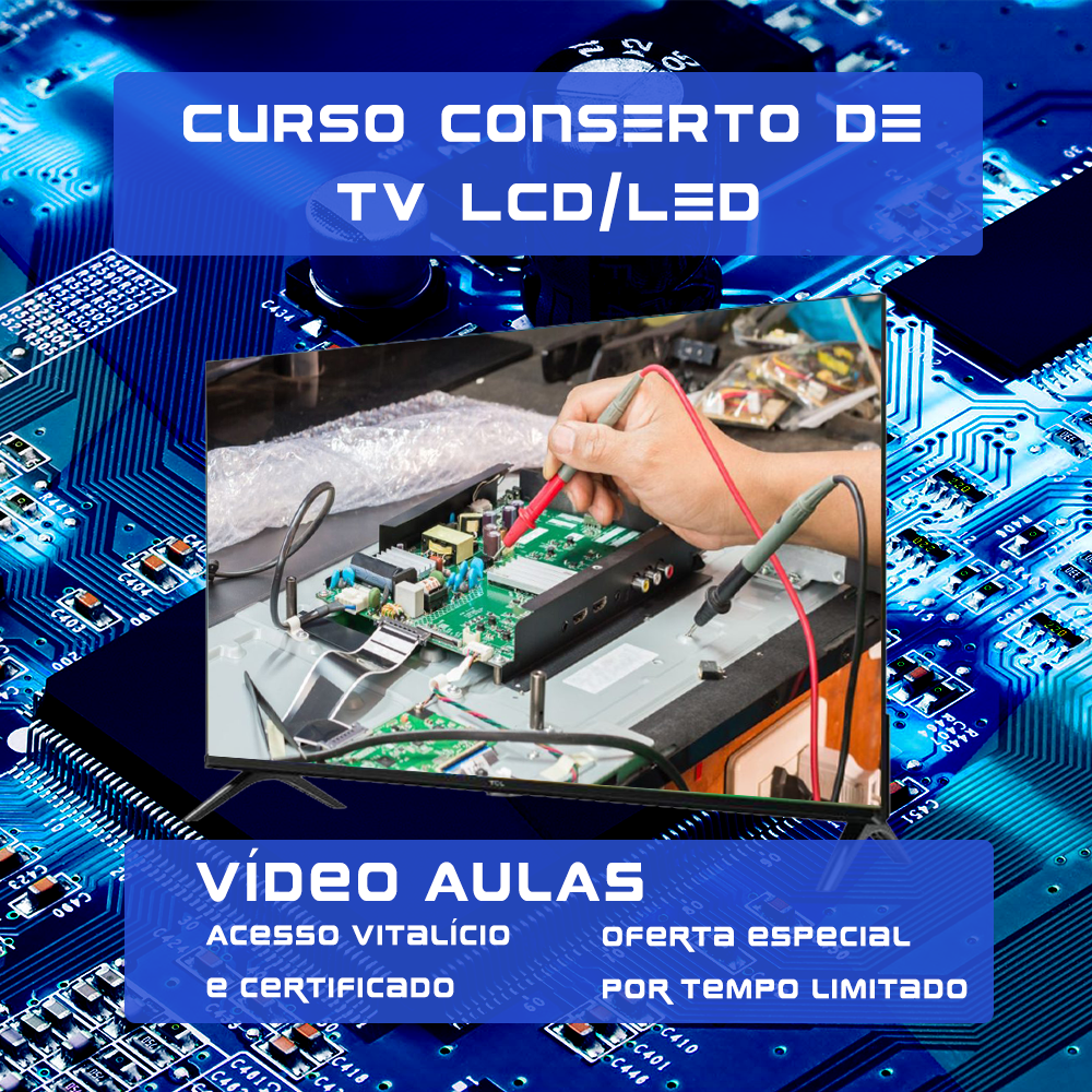 Neste curso você aprende a identificar os circuitos da TV, testá-los, diagnosticar a causa dos defeitos e fazer a manutenção correta. Teremos como base dois aparelhos de tv modernos que servirão de referência para os reparos. Abordamos os testes nas placas fonte, placa mãe ou placa principal, placa T-Con (quando houver) e também abordamos os defeitos relacionados ao display ou tela LCD. Você ainda conta com uma série de ebooks exclusivos que vão lhe ajudar muito no estudo de conserto de tvs modernas.